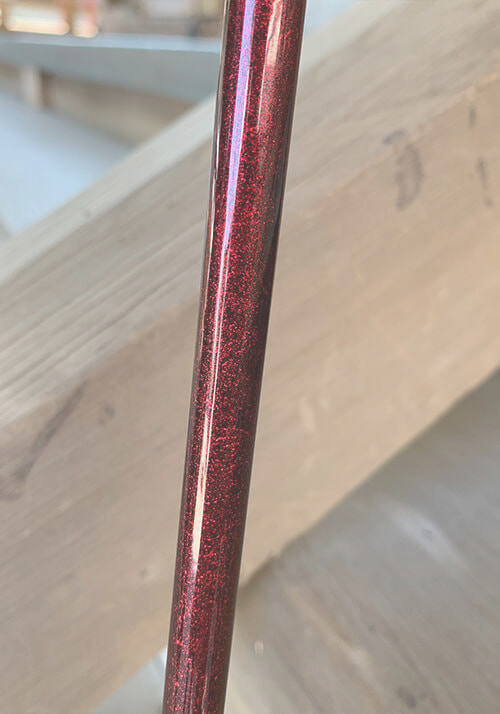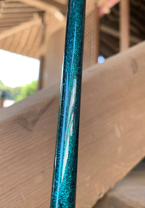 また、体に負担を掛けないように、手元側の重量を増やすことで、スイングを安定させ、ヘッドスピードをアップさせる仕様です。そして、従来の作業工程に更にひと手間、塗装を加えることで、粘りのあるシャフトへと変化しました。